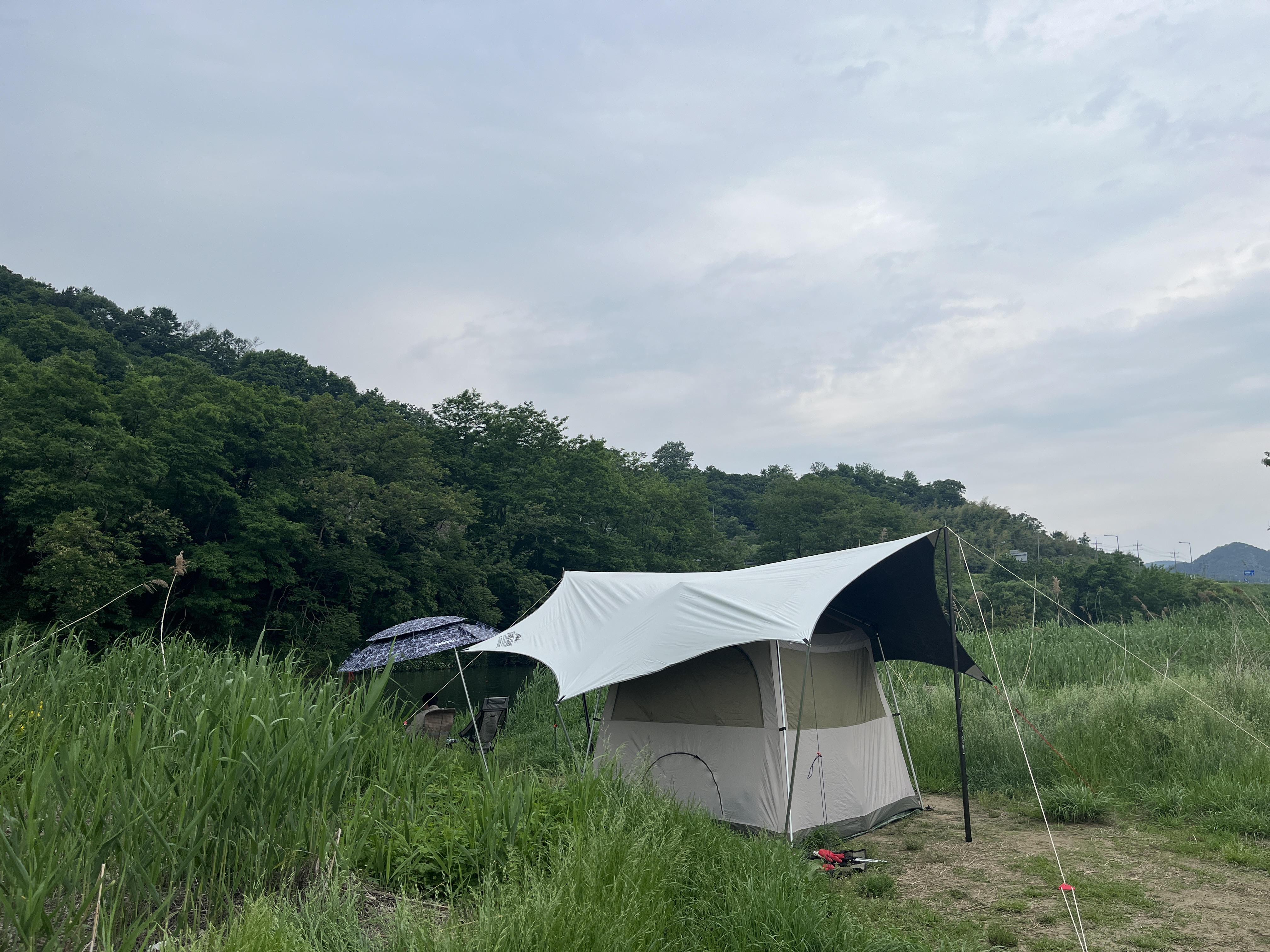 네이처하이크는 부피도 작고 편리해서 낚시 텐트로 딱입니다. 비소식이 있었기 때문에 타프를 쳐줬습니다. 저렴하게 구입한 타프인데 부피도 작고 튼튼해서 마음에 듭니다.